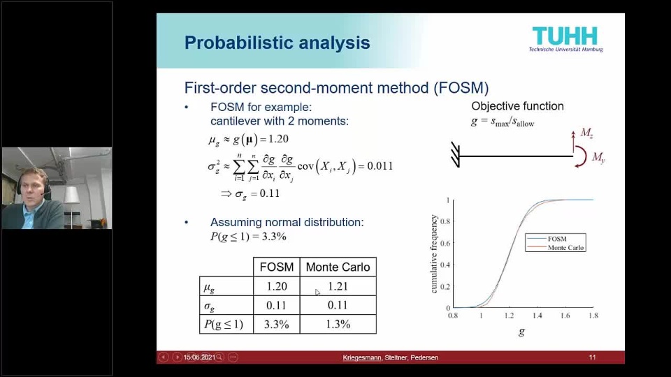Sensitivity-based RDO approaches are very fast, but require new implementations for each combination of objective function, design variables and random parameters. However, the current talk presents an approach that uses the existing capabilities of Abaqus and Tosca. It is implemented as a plug-on and can easily be applied to various objective functions (like compliance, stress or buckling load) and optimization approaches (like sizing and topology optimization). By application to industrial examples, the capabilities and limitations of the approach are demonstrated.