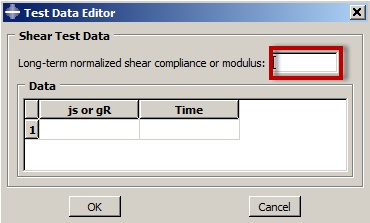 One last note, in the video, as we were entering the shear test data, the input dialog box (shown below) has a place to enter a value for the "Long-term normalized shear compliance or modulus". This is optional input and can help in the fitting, especially when you have a good idea of what the value at very long time (infinity) is. It is a best practice however to have material test data that spans the range of time (and strain) that you expect in your analysis.