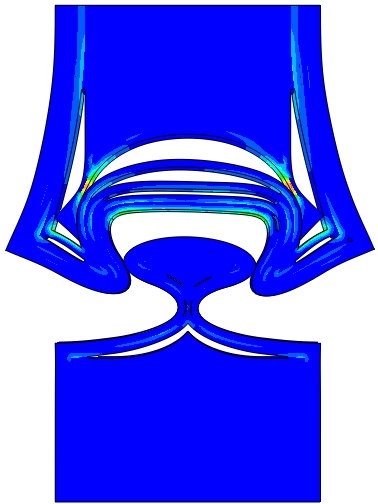 To investigate these hypotheses, Multi-Scale Mechanics and Materials by Design Lab researchers use physical experiments and computer models. One important tool is structural simulation using Abaqus. The simulation can be quickly re-run with different parameters – for example, different geometries or layer thicknesses – in order to find the critical values that determine the strength and toughness of the material. The simulation can also visualize the exact distribution of forces and strains within the structure for a better understanding of how it works.