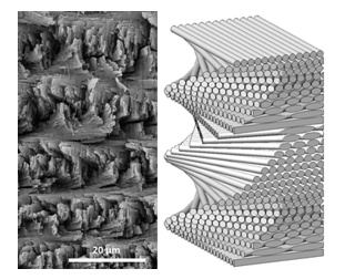 There are three steps to understanding biological materials. The first is to characterize the structure. That means discovering the geometrical aspects of the architecture, the hierarchy of components and their distribution. They also need to characterize the fundamental mechanical properties of the individual constituent materials and how the individual building blocks behave.