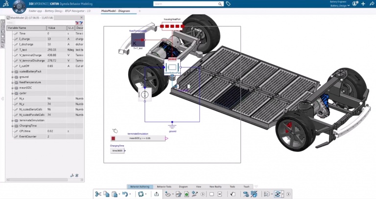In figure 4, we see the implementation of Battery Pack workflows using the 3DEXPERIENCE platform. In this example, we simulate the battery range scenario as well as a battery-charging scenario. The platform enables users to switch between the two scenarios as well as between the 1D and 3D models.