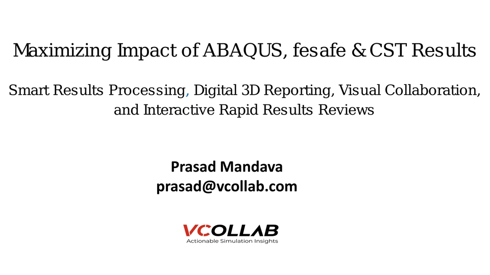 In this presentation, we’ll dive into VCollab’s innovative solutions that revolutionize the conventional results processing, reporting and results review tasks analysts encounter when handling Abaqus/fe-safe/CST results. The areas of focus include: