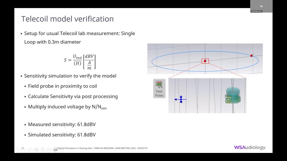 We were privileged to have Dr. Srien Sithara SYED NASSER from WSAudiology present on the topic "Telecoil Simulation In Hearing Aids" at the SIMULIA REGIONAL USER MEETING APSOUTH Virtual Event on August 3rd, 2023