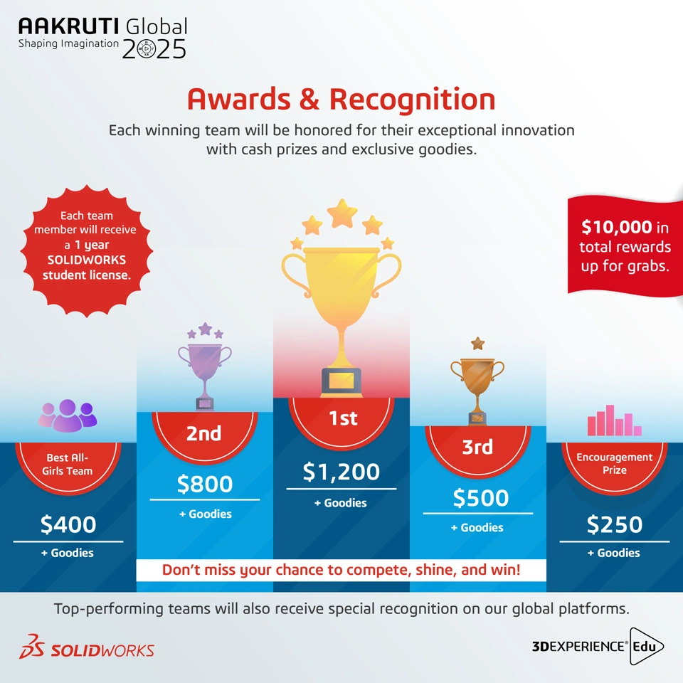 🚀 Every team member gets access to mentorship, a 1-year student membership to top innovation platforms, and a chance to present their ideas on a global stage at 3DEXPERIENCE World 2026.