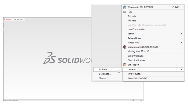 Online licensing is not available. SOLIDWORKS 2022 products will not use online licensing if enabled. Before running SOLIDWORKS 2022 products, contact your administrator to ensure your licenses are set up for machine activation.