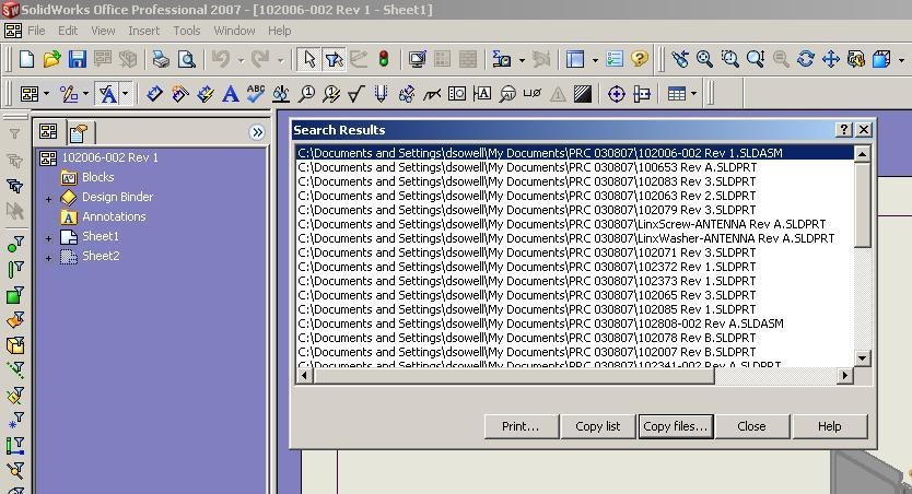 One screenshot shows the Drawing Opened in SolidWorks, File, FindReferences. Because you can't expand this dialog box, you can't seeeverything, but all References are found and resolved.
