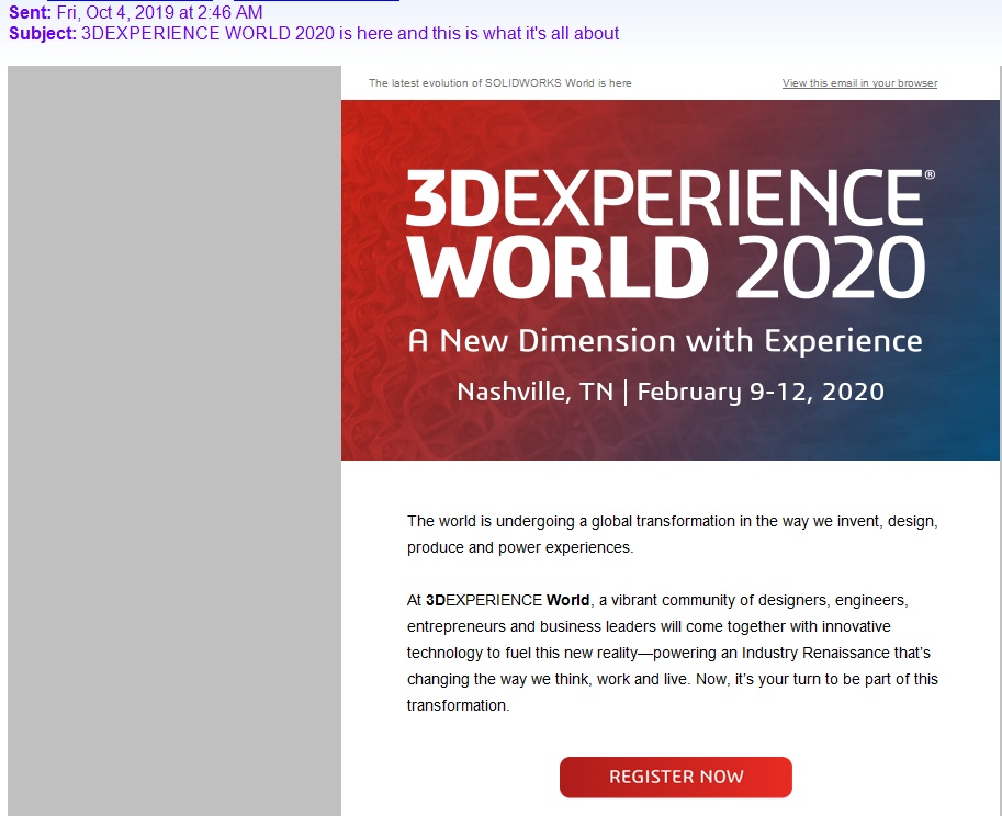 I found out today that the 3D EXPERIENCE WORLD 2020 registration is now open.- 3DEXPERIENCE World 2020 - Dassault Systèmes