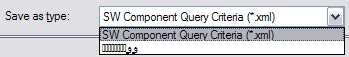 The 'Export Criteria' button opens a save dialog where the 'Save Astype:' drop down contains 'SW Component Query Criteria (*.xml)' andone or more other types with random garbage text as shown in theattached image.