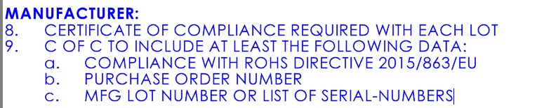 C OF C TO INCLUDE AT LEAST THE FOLLOWING DATA: