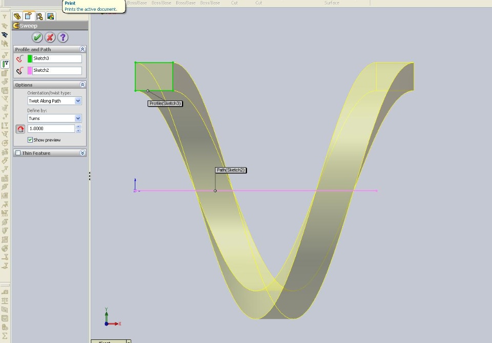 I am trying to get a helical cut in my model and the problem isthat I want the profile of the cut to remain vertical while itfollows the helical path (just like it would be manufactured i.e.the tool is stationary while the part rotates and translates).