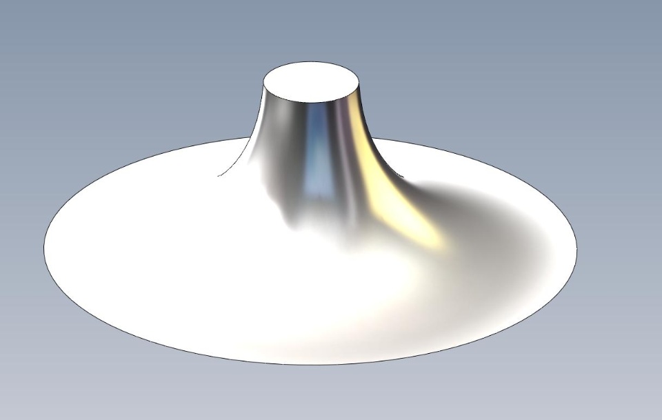 I'm trying to create a helix that is defined merely by pitch &a revolved spline. I know about the "variable pitch" table, butwould rather generate these diameter values using geometry, such asin the attached render.