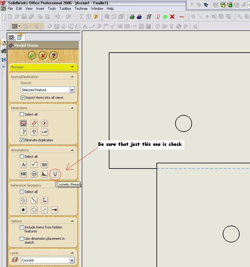 Does anyone know how to show cosmetic threads on an assemblyin a Broken-Out Section view? If I just place the model as aregular model view, the threads show up just fine. But when I use aBroken-Out section view to show some of the internals of theassembly, the cosmetic threads disappear. Can anyone helpme?SolidworksDrawings And Detailing