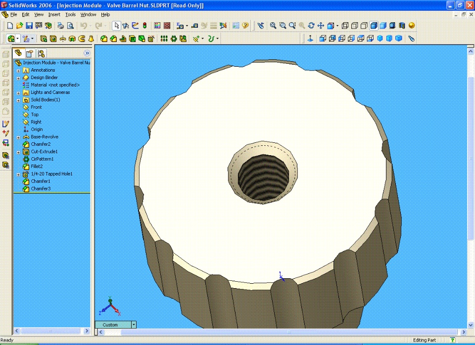 How do you get the fake threads to show up? I have a partfrom customer that shows a varying gradient that make the inside oroutside of a thread look kind of like a threaded area, but when Iput a cosmetic thread into a part it does not show the fake threadgradient.SolidworksParts And Features