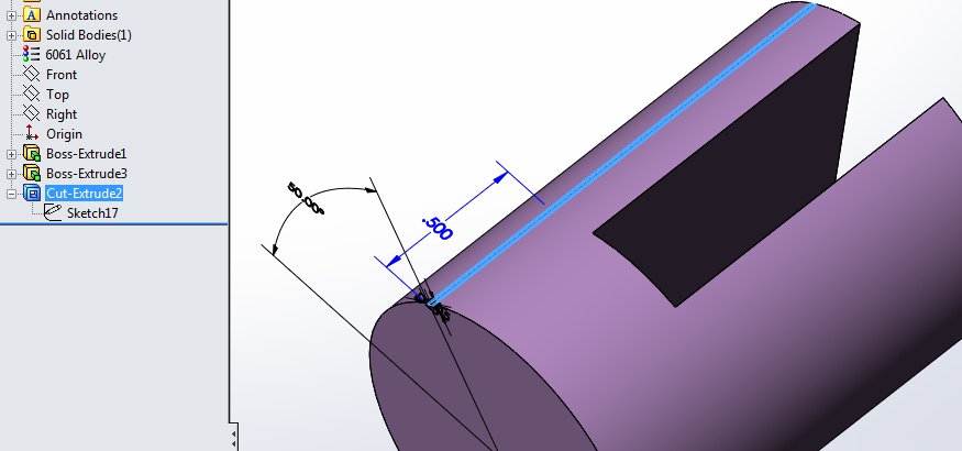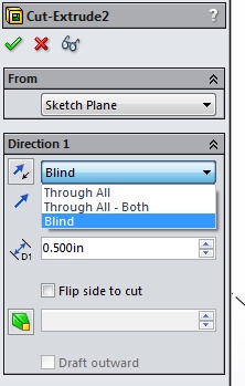 Hey all, here's a weird one for you. I was editing a part that someone else created and I changed the profile sketch for a cut extrude. The cut depth was set to .500" but after I changed the sketch and exited now the cut is shown thru all. If I edit the feature and change the depth to other blind depths nothing changes. What's also weird is that some of the other deptch options are missing, such as 'up to surface' or 'up to vertex'. Also, if I change the depth to 'Through all' and exit, if I go back 'blind' is no longer an option. I've never seen anything like this, have you?