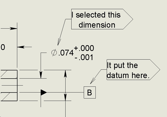 Is anyone else having problems aligning Datum featuresproperly? In SW2006, datum placement was a mess. Youcouldn'talign datums to dimensions or snap them to leader bendsfordiameters. I thought they had fixed them in 2007.