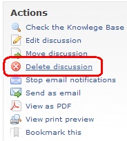 To delete a thread click on Delete discussion on the right side. There are lot more options like edit discussion, move discussion, etc. Please be noted that the complete post along with any replies/information will get deleted.