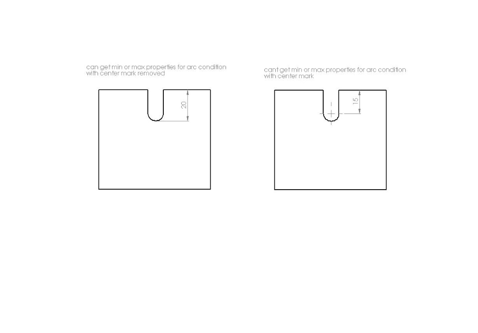 i have a cut feature slot 20mm long 10mm diameter trying to dim theslot end to end with a center mark inplace, it will only let me dimto the centre of the arc but then i normaly do properties thenselect max, but that is no option, then i found if i remove thecentre markform the arc the min, centre and max options are there,is this a new thing or a sp problem. i find this a pain as i neverhad this problem in 2004. any one else had the same problem or knowwhat im doing wrong?