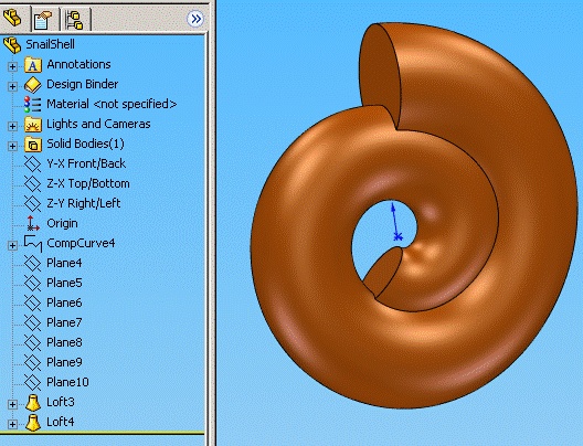 I am trying to model a snail shell. I have a profile and a taperinghelix much like a normal spring modeling. However with a smailshell the sweep needs to intersect with itself to end up thecorrect shape.