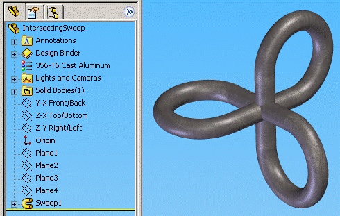 However solidworks does not like this, and will only let me sweep aprofile small enough to allow it not to touch itself.