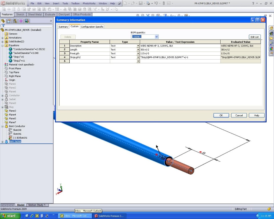 I am trying to add a text suffix to an equation value in acustom property as I would normally do with a dimension value (IE:mm, in etc.). The problem is as soon as I add the suffix (in thiscase a tolerance) the evaluated value reverts to the equationitself (please see screenshot). Can this be done with an equation?