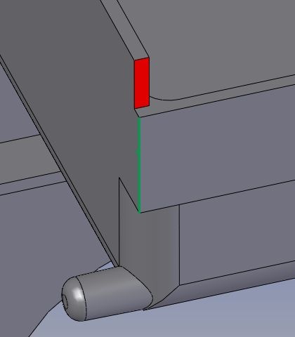 I do not want it to include the red face, I am selecting the edgethat is highlighted in green these are the only two faces I wantthe fillet on,
