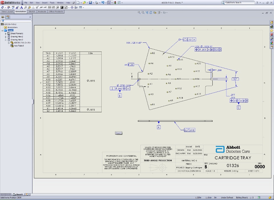 So I have a part with a series of holes. To make the partdrawing much cleaner looking I've been using the hole table.However, I noticed that holes generated from the same sketch andfeature are coming up in the hole table as different size, thuswith different tag letters.