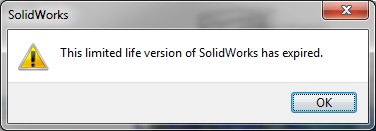We are aware of an issue where those users of the SolidWorks Student Design Kit (SDK) 2013-2014 who should still be entitled to use it, are seeing the following error message when launching SolidWorks after December 31 2013.