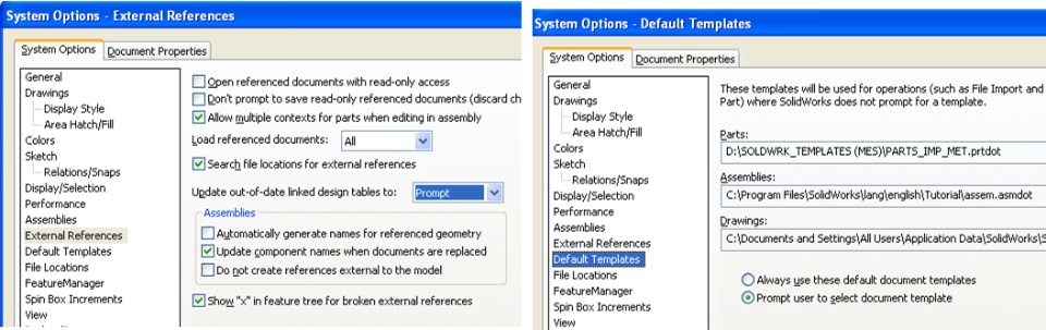 When insert a New part, always in-context assembly, where and how to set a specific part template (let say having dimensions allways in fractions as an example or having both in decimals metric and imperial). Also each time when I insert a new part I have to be prompted before to select the right specific template and not to be taken by the default system. (Also, when I do this I'm working in sldasm file so I do not start a new file making choice of the template I want).