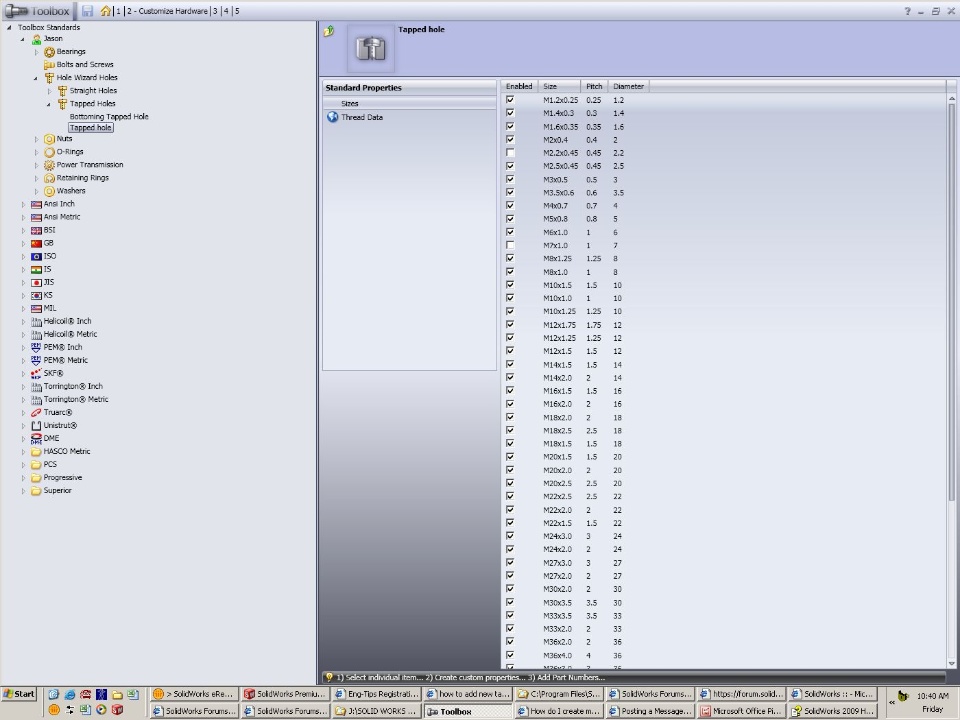 Like most designers, we have a need for threaded holes thataren't included in SW.