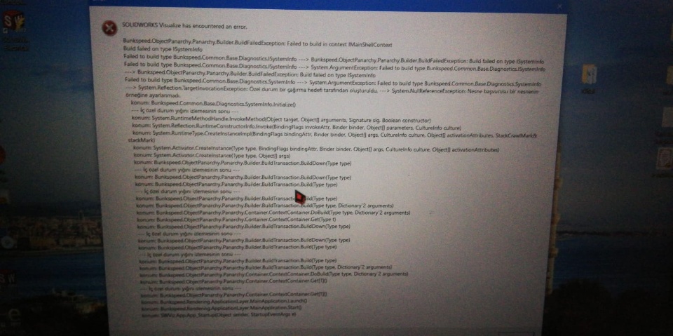 After the normal startup screen (with the render) I get an error message saying Solidworks Visualize has encounterd an error.