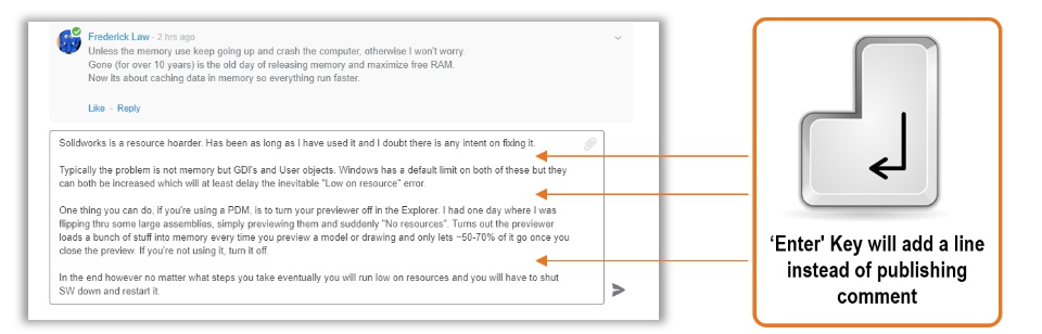 - Hitting ‘Enter’ posts a comment rather than entering a new line