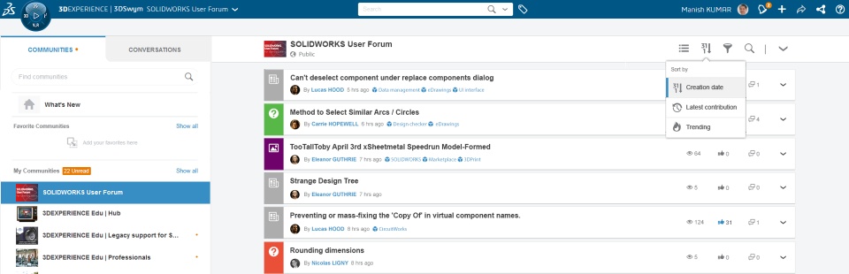 To help with finding topics that may be of interest to you, in addition to sorting based on “Creation date” and “Latest contribution” a new sorting method “Trending” will be provided. When used, “Trending” order will put the post/question/media/wiki – with latest comment on top.