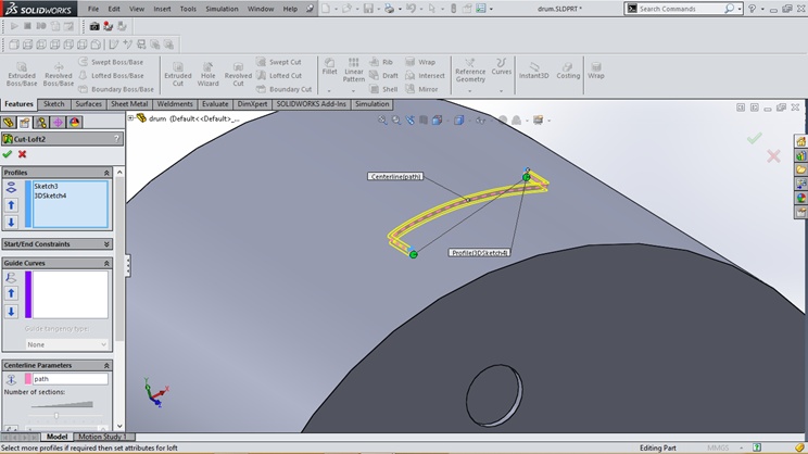 Loft with path can be a useful and easy tool when controlling the sweep is not working.