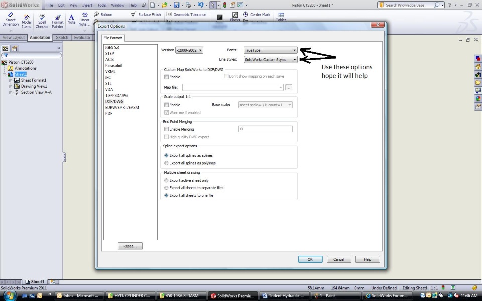 is there a better way of exporting slddrw to dwg which keepsthe line weight properties?