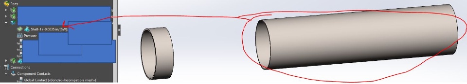 I am running a static pressure analysis in Solidworks Simulation. I have a thin walled element that I want to treat as a shell element, because otherwise my mesh would have very small elements (.002 or so).