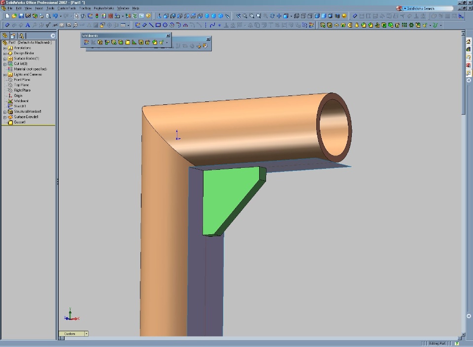 hello - i just started using solidworks 2008 a couple ofweeks ago & our company designs large weldments - i waswondering if there is a way besides making an assembly out of partsto make a frame part to show where 2 pieces of metal plate arewelded togather to show the lines where the two meet - everytime imake a part that has plates "welded" together some views show up asthe parts being one piece (no break line where you would naturallysee one) - it makes the parts look like a casting - any help w/this matter would be greatly appreciated - thank youSolidworksGeneral