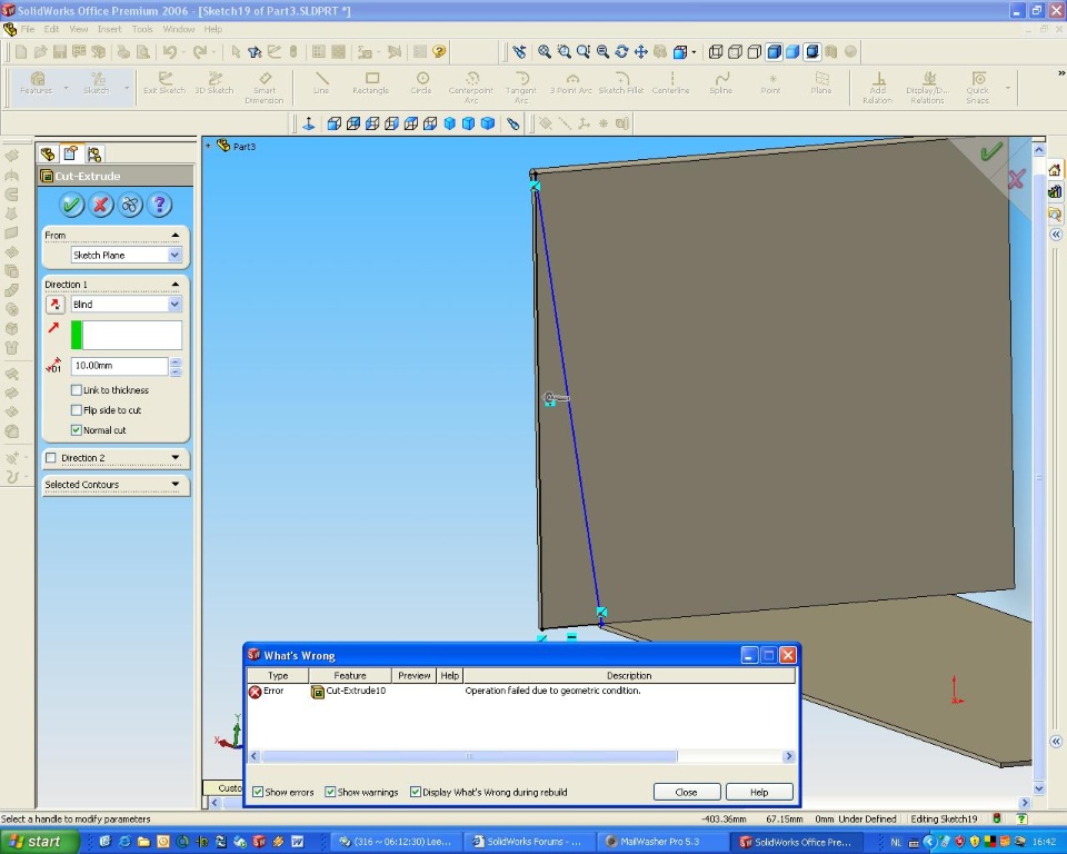 I'm working on an sheetmetal part. I've added 1 base-flangeand 1 edge-flange which is not rectangular (edited the sketch).