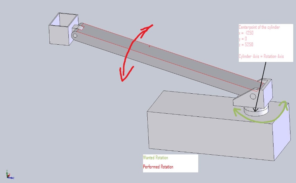 According to this I tried to develop an interface to theSolidworks-Api, which shall run the rotations within the cadprogram. Unfortunately the result does not represent the aimedmovement. Perhaps I made a mistake or I have a mistake in thinking,because the movement does not follow the aimed axis at all.