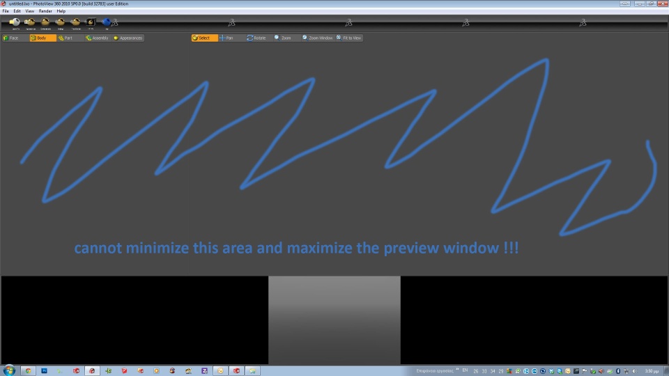My problem is that i cannot shrink this greyish area to fit the two toolbars in hegiht and so cannot maximize the preview window. Has anyone faced anything like this before?