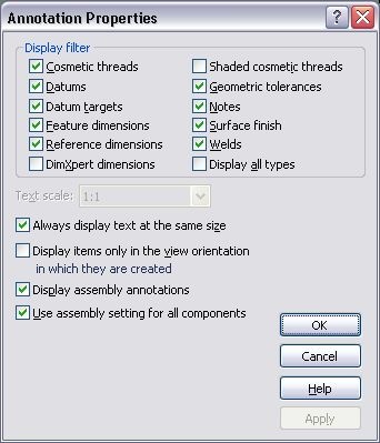 I have a really dumb rookie question. How do I make my partdimensions appear in the assembly? I have the "annotations" set todisplay everything, yet nothing is visible...