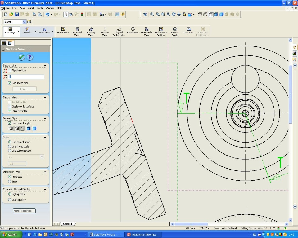 When I choose the aligned section view function and select theupperpoint, centerpoint and the point on the bottom right (under20degrees) I get the section view (cutted out) but when I drag itto the right, it only can be placed under an angle of 20 degrees.