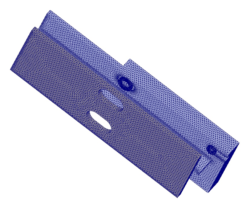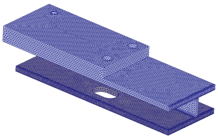 I could successfully make this solution with half model & lower frame ribs & lower plate with shell model (mixed mesh model) but I wanted to whether transition of stresses between ribs and lower plate shows similar results so I changed these parts to solid to generate right mesh alignment (compatible mesh)