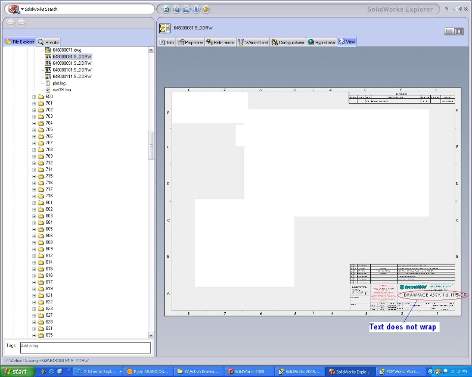 I did save the file as an e-drawing to check if that was theproblem, but it wraps the text. So I'm not sure why it would notwrap the text in the SW Explorer view.