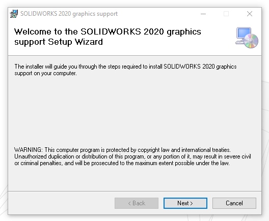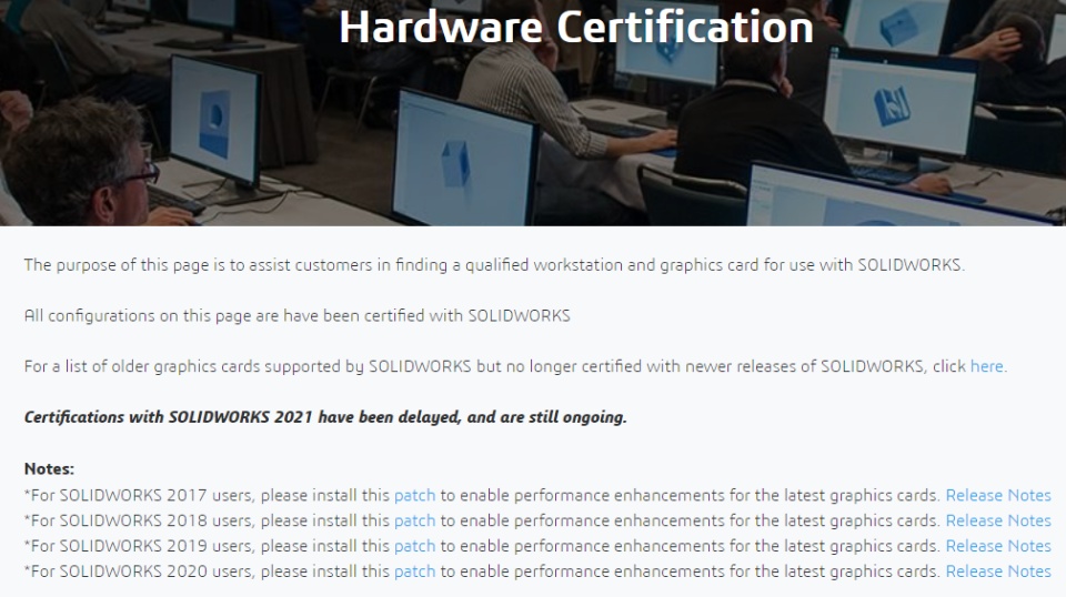 "*For SOLIDWORKS 2020 users, please install this patch to enable performance enhancements for the latest graphics cards. Release Notes."