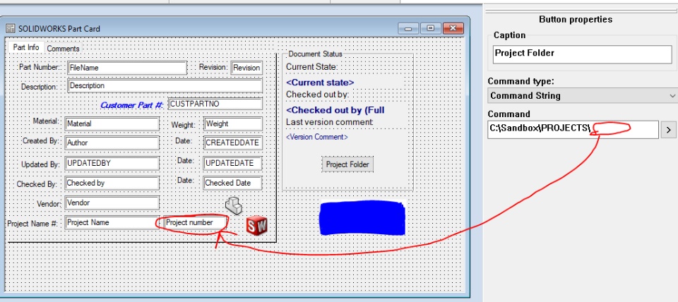 How do I reference the project number variable in the button command string option of SW PDM file data card? I want the button to go to the specific project folder. Thanks in advance!