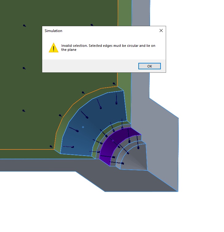I'm trying to add a 1/4 symmetric bolt (countersunk screw) to one of my models & keep running into an error (see screenshot). What am I doing wrong?