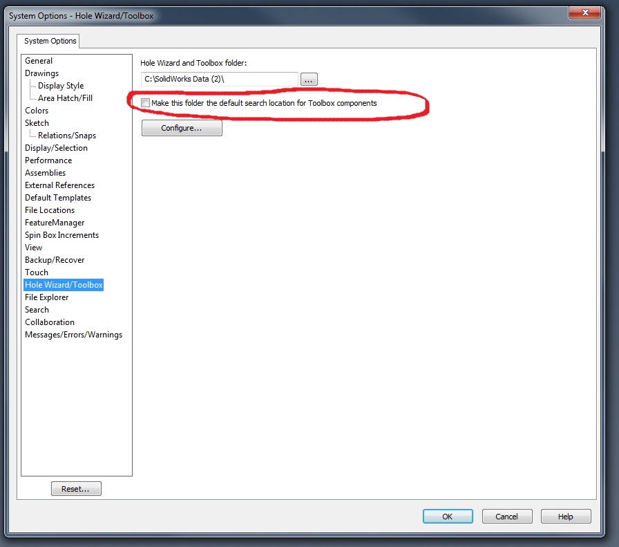 Don't forget to un-check this box (it will be checked by default) if you have saved toolbox parts to a different location.