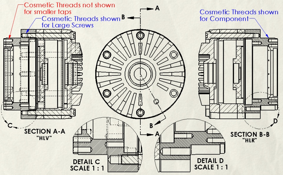 Solidworks does not make it easy to put tapped holes in adrawing. The do not show up as tapped holes in the assy or model.For such an important part of design. Solidworks sure missed thisone. They need to review how easy Inventor makes it.