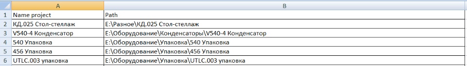 For further processing of the log, it is necessary to fill in the Project List.xls, the table assigns a path to a specific order.
