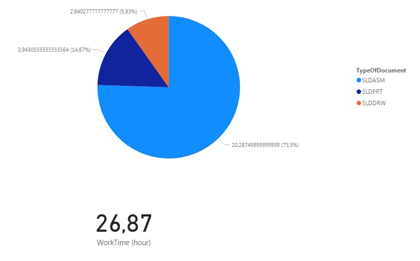The total working time in SOLIDWORKS is 100 hours from 06/07 to 08/08, work on our project took 27% of the total time.